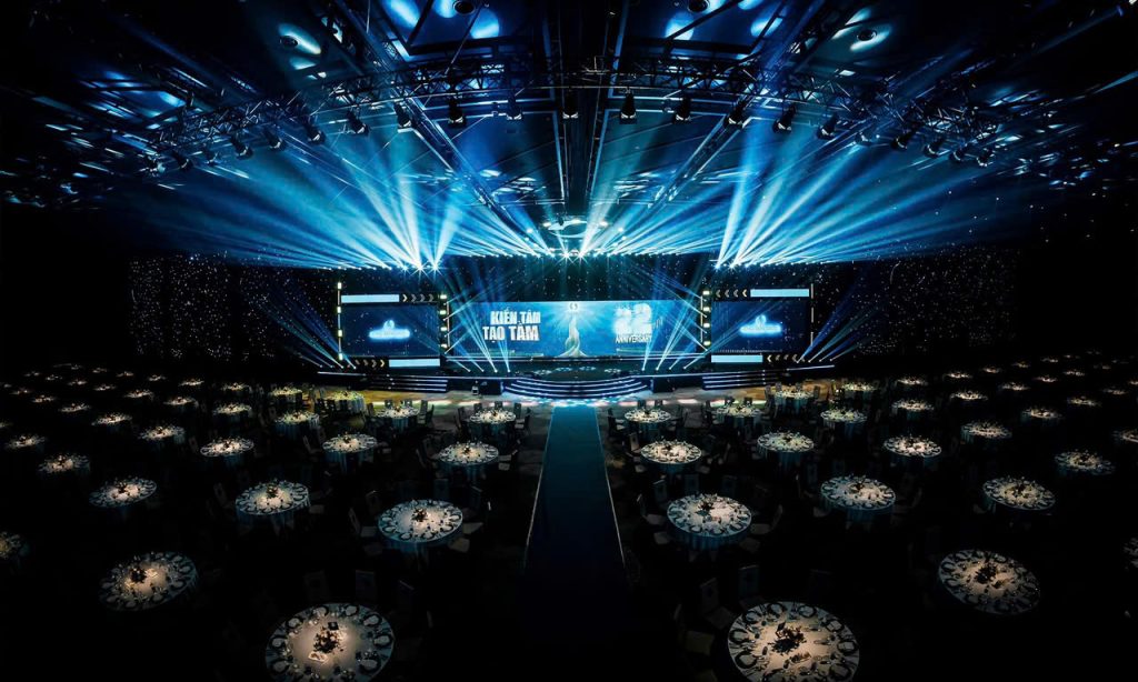 - Ánh sáng nghệ thuật: Sử dụng ánh sáng để dẫn dắt sự chú ý, tạo hiệu ứng sân khấu ấn tượng, làm nổi bật các tiết mục và tôn vinh những khoảnh khắc quan trọng nhất của sự kiện, như lúc trao giải hay màn chúc mừng cuối năm.